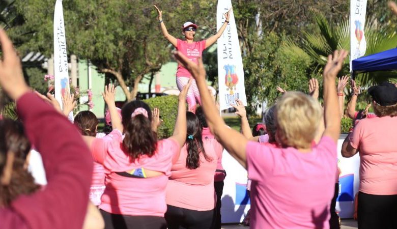 Música, baile, concursos, feria de autocuidado y exámenes preventivos fueron parte de las actividades que tuvo la “Zumbatón Rosa” que se desarrolló en el Parque Schneider de Copiapó. La iniciativa forma parte de la parrilla de actividades del mes contra el cáncer de mama organizado por los equipos de Salud Municipal.